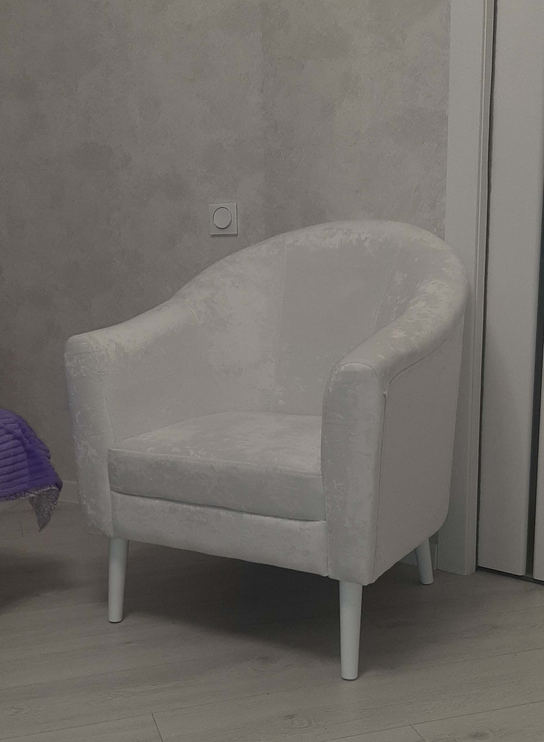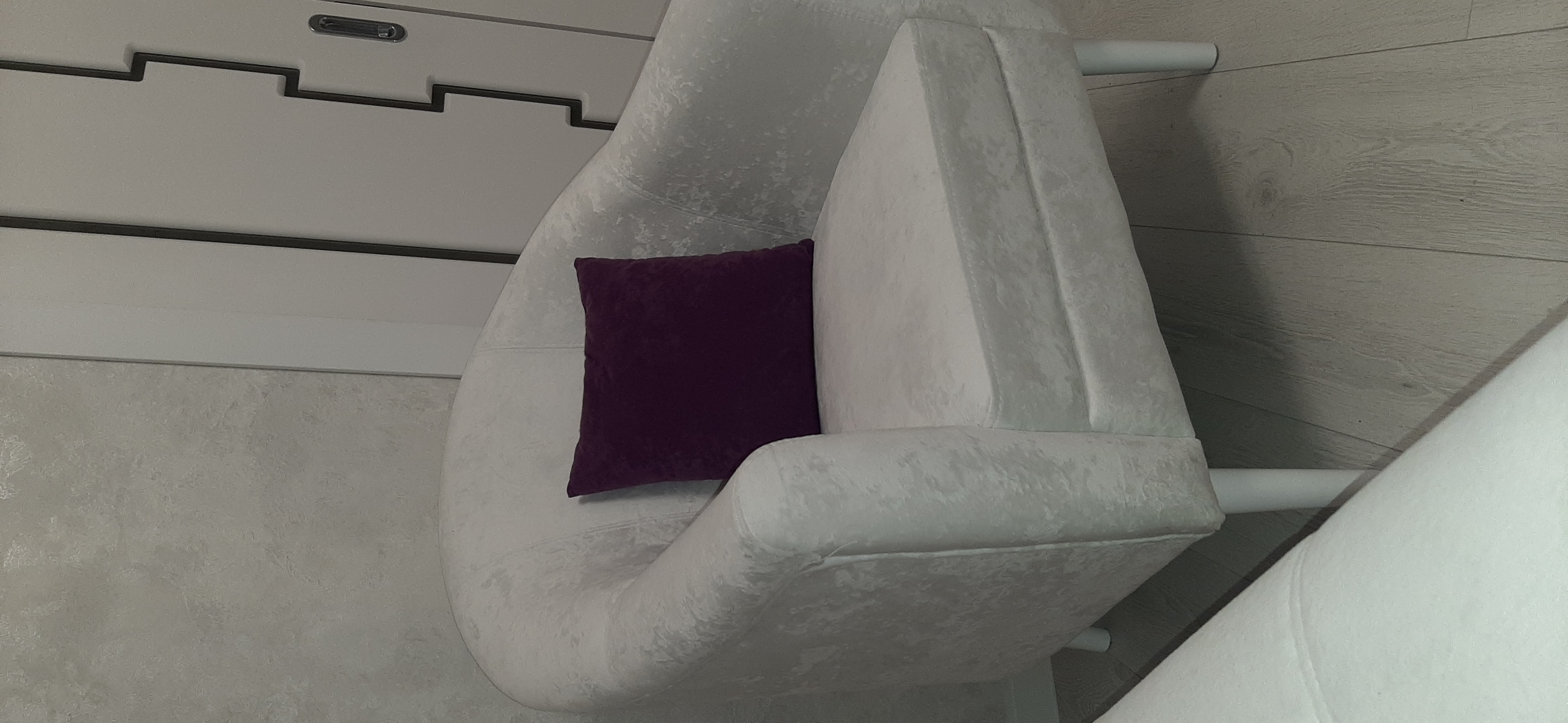 Плюс то, что с кресла легко вставать, спинка в меру пологая, комфортный отдых гарантирован! Кресло выбирали в ткани Velutto