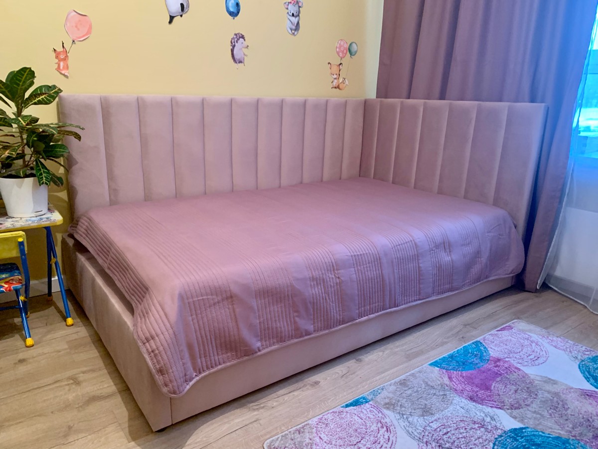 Заказали тахту в антивандальной ткани, простой и лаконичный дизайн.