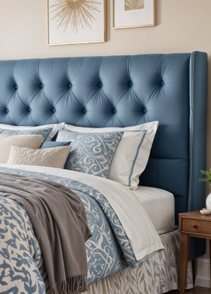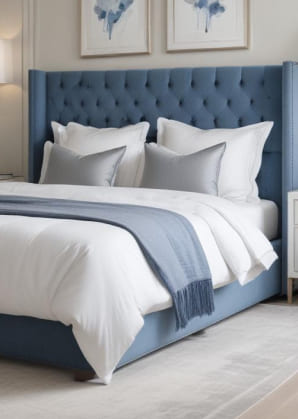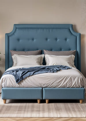 Спинка у изголовья и изножье. Эти предметы не являются обязательными и служат скорее для украшения и для повышения комфорта. Например, при чтении книги перед сном намного удобнее опираться на высокую мягкую спинку. А край эстетичных ножек зрительно отделяет спальное пространство от всей спальни и являются акцентом, от которого ваш интерьер только выиграет.