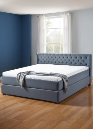 Кровать с ящиком для хранения в изголовье. В этой модели достаточно места для хранения одеял, подушек и постельного белья. Также на такое изголовье можно поставить декоративные элементы или книги.