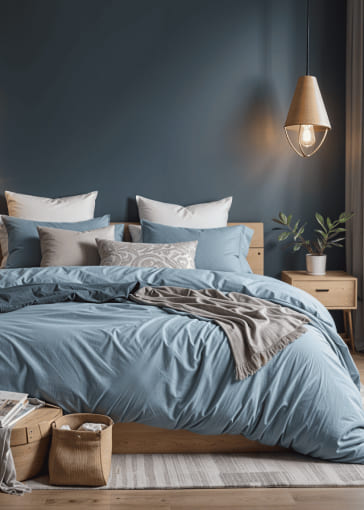 Узоры на стенах – в данном случае не стоит перегружать пространство спальной комнаты. Будет уместным приобрести однотонную кровать, базовых оттенков в минималистичном стиле. Ученые выясняли, что самыми благоприятными цветами для спальни (чтобы быстрее высыпаться) считаются: синий, желтый, зеленый, серебристый и оранжевый.
