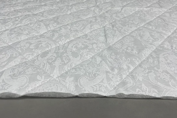 Верхнее покрытие наматрасника хлопковый жаккард - высокопрочная натуральная ткань, состоящая из хлопчатобумажного волокна с особым способом переплетения волокон. Хлопковый жаккард может быть двойным (дублированным) или недублированным. Как правило, дублированный жаккард используют в качестве верхнего покрытия для матрасов, чехлов и наматрасников. Особенность материала заключается в том, что рисунок, получаемый в результате переплетения нитей волокна, одинаковый с лицевой и изнаночной стороны. Самой важной характеристикой ткани является его экологичность и износостойкость.